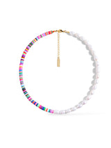 Give your love for pearls a colorful upgrade in choosebyfelice Surf & Pearls Necklace, featuring a chain of lustrous white pearls and colourful discs. Pair this gem with a delicate chain or two and your personality and style will be known at any event in an instant. Shop yours now