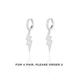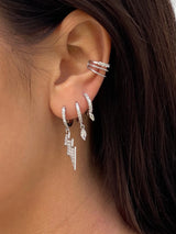 Evoke a striking look that lights up your style with choosebyfelice Lightning Bolt Hoop Earring, featuring a chic clear zirconia-stone adorned lightning bolt pendant that dangles gracefully from a sparkling Silver hoop. Pair this gem with another fine earring set, a black jumpsuit and a leather jacket for a sophisticated yet slightly edgy style.