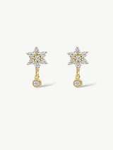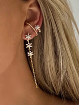 Flaunt a touch of elegance with choosebyfelice Flower Drop Stud Earring, featuring a beautiful flower shaped stud earrings with a fine round zirconia stone pendant dangling underneath all set with 18ct gold plating. Adorned in pavé zirconia stones, this beauty makes your fine earring stack shine all the brighter so don't miss out order yours today.