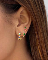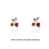 Enchant anyone with choosebyfelice Cherry Stud Earring. featuring a dazzling cherry shaped stud earring set with small green and two tones red zirconia stones. Perfect for everyday wear, this stunner delights any woman who wears it, particularly when paired with a few fine huggie or stud earrings, for a trendy stacked look that will turn heads wherever you go.