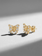 Fly high with choosebyfelice Tiny Butterfly Ear Stud which shows off a precious butterfly pendant fashioned in an array of vibrant 14ct gold plating and adorned with six sparkling lavender or white pavé zirconia stones. Perfect for everyday wear, this stunner delights any woman who wears it, whether you wear it alone or paired with a few other earrings, for a stacked look of elegance and grace no matter the occasion.
