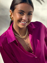 This Necklace is made of a sterling silver base with 18ct recycled Gold plating and is not waterproof! All our jewels are 100% hypoallergenic, nickel, lead and cadmium free!