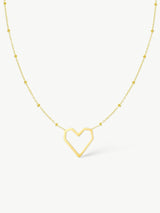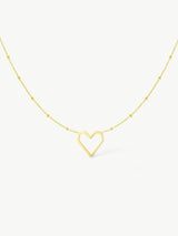 Celebrate your Love in choosebyfelice Heart On The Dots necklace, crafted with one open heart pendant dangling on a fine link chain with small golden dots all set with 18ct waterproof gold plating. This necklace style is ideal for everyday wear, whether you wear it as statement piece or combined with a few other necklaces for a stylish stacked look that will turn heads wherever you go. Shop yours now!