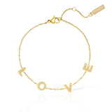 Let your LOVE shine through in choosebyfelice Pavé LOVE Letter Bracelet, crafted with sparkling dainty upper-case block letters that dangle from an alluring chain of 18ct gold plating. This bracelet is waterproof, so ideal for everyday wear, whether you wear it alone or combined with a few other stunning bracelets for a look that will turn heads wherever you go. Shop yours now!
