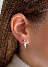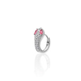 Embrace your wild side with choosebyfelice Snake Huggie earring, expertly crafted in the shape of a dazzling snake fully set with white zirconia stones and two pink "eyes made of zirconia stones all set in glowing 14K gold plating This beauty is absolutely breathtaking to behold. It's a unique must-have that livens up any outfit, especially when worn as a pair with our bestselling Snake with cuff earring.