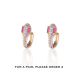 Embrace your wild side with choosebyfelice Snake Huggie earring, expertly crafted in the shape of a dazzling snake fully set with white zirconia stones and two pink "eyes made of zirconia stones all set in glowing 14ct gold plating This beauty is absolutely breathtaking to behold. It's a unique must-have that livens up any outfit, especially when worn as a pair with our bestselling Snake with cuff earring.