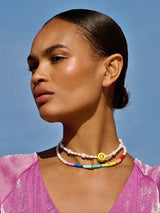 Give your love for pearls & color an upgrade in choosebyfelice Pearl Smiley Necklace, featuring a cute smiley face pendant set into a beautiful real freshwater peal necklace. It's too cute not to add to your stack. You can wear this stunner as a choker necklace or you can wear it the regular length on your collorbone, either way it is a joyful and beautiful piece that will turn heads wherever you go. Wear this versatile beauty as a statement piece or combined with a few other necklaces for an exquisite layered chain necklace look. Get yours now.