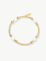 Elevate your arm-candy with choosebyfelice's Pearly Bubbel Bracelet, adorned with four stunning freshwater pearls on a dazzling chain of golden beads with a waterproof 18ct gold plating that will never fade! This bracelet is ideal for everyday wear, whether you wear it alone or combined with a few other bracelets for a stylish eye-catching look. Get yours today so you can wear it tomorrow(NL).