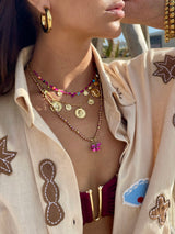 Voeg wat goud en munten toe aan je outfit met de door Felice gekozen Double Coin Chain ketting, bestaande uit twee fijne 14K vergulde Figaro kettingen bezet met prachtige munten. Speels en toch verfijnd, dit juweeltje laat je outfit gewoon opvallen. Draag hem alleen of in combinatie met een paar van je favoriete halskettingen om bij je levendige look te passen. Koop nu de jouwe!