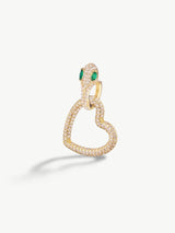 Opmerking: je kunt de Pavé-hartbedel eraf halen en alleen de Snake Huggie-oorbel dragen voor een meer minimalistische look.