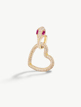 Opmerking: je kunt de Pavé-hartbedel eraf halen en alleen de Snake Huggie-oorbel dragen voor een meer minimalistische look.