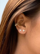 Eenvoeg een sprankeling toe aan elk oorfeestje met de door Felice gekozen "Daisy Ear Cuff" met een rij kristalheldere zirkonia-stenen en twee rijen gedraaide vergulding. Voor deze ear cuff heb je geen piercing nodig, je schuift hem gewoon over het oor. Ook verkrijgbaar in zilver en in goud met zwarte stenen.