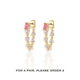 Voel alle Parisienne in choosebyfelice Atelier Vendôme Earring, met een geweldige roze peervormige zirkonia-steen met een ketting van witte zirkonia-stenen die gracieus eronder bungelen. Draag deze schoonheid alleen of in combinatie met een paar studs voor een opvallende gestapelde look die de aandacht trekt op al je komende evenementen. Koop nu de jouwe!