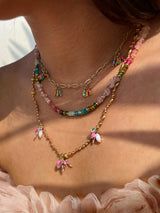 Add a touch of Boho Chic to your outfit with choosebyfelice handmade Beaded Tassel necklace, featuring a unique design with three dazzling handmade tassels made of real pearl, pink & lavender beads dangling underneath a fine golden balls on a mixed satin cord chain of 18ct gold plating. This necklace style is ideal for everyday wear, whether you wear it as statement piece or combined with a few other necklaces for a stylish stacked look that will turn heads wherever you go. Shop yours now!