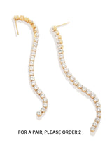 Pronk met een trendy look van luxe met choosebyfelice Drop Diamonds Ear Pin, met een 14K verguld mooi en tijdloos ontwerp van een verbluffende reeks oogverblindende heldere zirkonia-stenen tot ongeëvenaarde perfectie. Draag het alleen of in combinatie met een paar schattige hangende oorbellen voor een trendy gestapelde look.