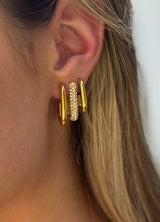 Een essentieel stuk voor als je subtiele sprankeling wilt, kies door Felice Pavé Oorringen met twee sprankelende U-vormige oorringen die zijn gemaakt van gloeiend 14K goud op een roestvrijstalen basis bezet met zirkonia-stenen, allemaal waterdichte meisjes! Deze schoonheden rocken een eenvoudig en verfijnd ontwerp en zijn een geweldige aanvulling op je dagelijkse stapel, of je ze nu alleen draagt of in combinatie met een paar andere oorringen of studs. Ook verkrijgbaar in zilver.