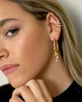These cool hoop earrings are expertly crafted of a premium stainless steel base with recycled 18ct gold plating which means that they are 100% hypoallergenic, waterproof and will not fade.