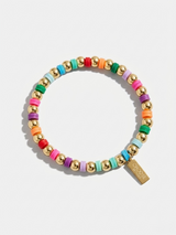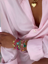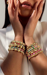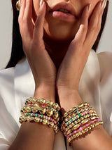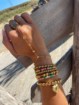 Imagine: Summer time, sunkissed skin wearing our beautiful Riviera bracelet around your wrist. Adorned with color and dazzling golden balls in high quality waterproof 18ct gold Plating. This smashing bracelet is the perfect everyday Summer piece, particularly when you flaunt it with a few other bracelets for a chic trendy look that will turn heads wherever you go. Don't wait-order yours today!
