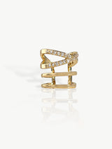 Eenvoeg een luxueus tintje toe aan elk earparty met de door Felice gekozen Double Up Ear Cuff met twee gekruiste rijen sprankelende heldere zirkonia-stenen en twee fijne rijen gepolijst 14K goud. Voor deze ear cuff heb je geen piercing nodig, je schuift hem gewoon over het oor.