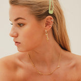 De ear cuff is gemaakt van een messing basis met een 14K Gold plating. Dit betekent dat alles hypoallergeen is.
