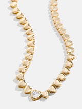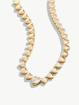 Maak kennis met onze mooie en tijdloze 'Eternal Love'-tennisketting in 18kt goud van Choose by Felice, met een elegant ontwerp van de tennisketting, vakkundig gemaakt van gouden harten, allemaal met elkaar verbonden als een prachtige ketting, met één oogverblindende 5 mm hartvormige zirkoniasteen als middenstuk, allemaal gemaakt van gloeiend 18kt gerecycled goud. Tzijn ketting zorgt voor een elegante en tijdloze look die jarenlang gekoesterd zal worden. Shop de jouwe nu.