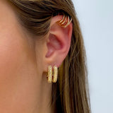 Geef een oogverblindende draai aan de chique ring met de door Felice gekozen ovale Pavé Huggie-oorbel, met een prachtige halve zirkoniasteen, half 14K verguld ontwerp. Als je de perfecte balans tussen sprankeling en verfijning wilt, pronk dan met deze schoonheid met een paar knuffels voor een elegante, gestapelde look.