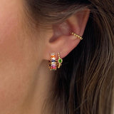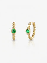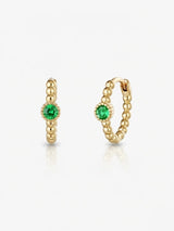 Elevate your ears with the Gigi Hoop Earrings—a stylish twist on timeless elegance. Each piece showcases a radiant emerald-green zirconia stone nestled on a fine beaded hoop finished in lustrous 18ct gold plating. Mix and match with other huggies and cuffs to create your own signature stack, or let these beauties shine solo. Pure joy in every sparkle. Get yours now.