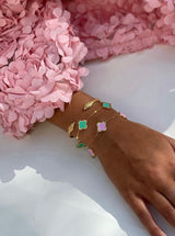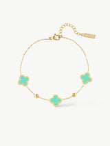 Celebrate your Luck in choosebyfelice Lucky Clover bracelet, crafted with three dazzling green enamel clover pendants dangling on a fine link chain set with our signature waterproof 18ct gold-plating. This bracelet is ideal for everyday wear, whether you wear it alone or combined with a few other bracelets for a trendy stacked look. Shop yours now!