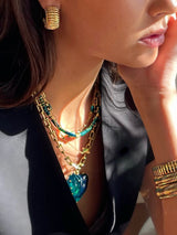 Highlight your striking sense of style in choosebyfelice Green Natural Stones Necklace, featuring a chic expertly crafted beaded chain of Bisbee Turquoise and aventurine stones with golden details. This eye-catching necklace is a brilliant addition to your daily stack of necklace for an exquisite style. Don't miss out, get yours today!