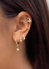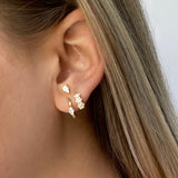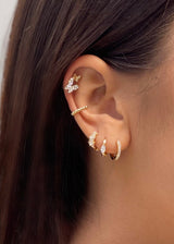 Looking for some fine sophisticated sparkle, we've got you! choosebyfelice Tiny Flower Huggie earring gives you subtile fine and cute sparkle throughout all days and nights with it's six sparkling flowers set into a Tiny huggie earring. Stack it up with a couple of delicate Hoops and an Ear Cuff for a playful stacked look that you'll wear as often as possible. Shop yours now!